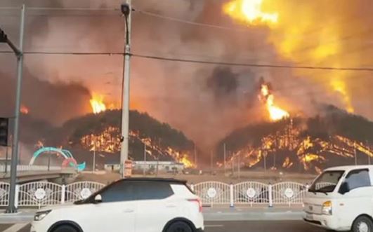 - 이후 두천리에서 발생한 산불이 강한 바람을 타고 강원 삼척지역으로 확산됨