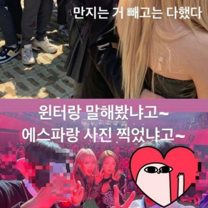 - 문제의 사진은 에스파 멤버들이 경복고에서 공연을 마치고 학생들 사이에 둘러싸여 제대로 이동하지 못하는 과정에서 촬영됐음.