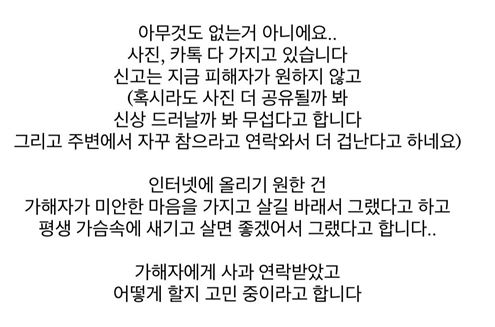 던밀스의 아내가 올린 글에 한 네티즌은 DM을 보내기도 했는데 이 네티즌의 글도 충격적이었습니다. 해당 글에는 "혹시 이 사람 OOO 아니냐. 제 친구는 그 사람이랑 디엠으로 만났는데 주변인들한테 관계 동영상 공유 당하고 충격으로 자살했다. 비슷한 사연이 있어서 심란해서 DM 보내 본다"라고 써 있었고, "이게 정말 사실인가요? 그사람이 유포한건가요?"라고 던밀스 아내가 묻자 "네 맞아요. 주변 사람들이랑 돌려봤다고 했어요"라고 답변돼어 있었습니다.