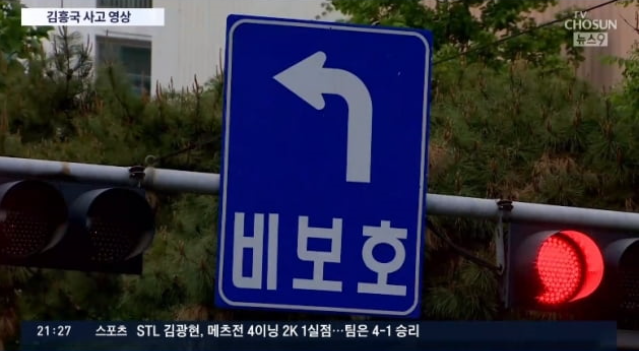 오토바이 운전자는 노란불일 때 직진을, 김흥국은 빨간불일 때 좌회전을 한 상황입니다.