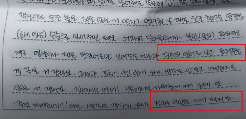[ 정인이 양모 옥중편지 내용 ]