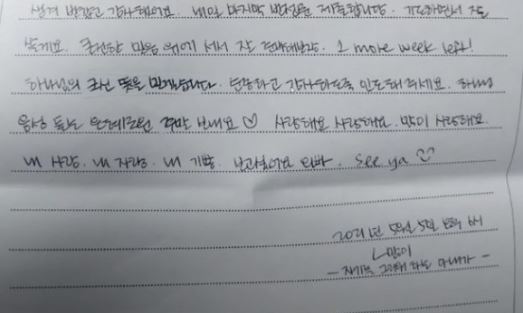- 편지 내용은 다음과 같음