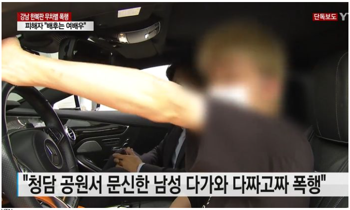 - 피해자는 여배우가 전화해 어디 있냐고 위치를 물었고 위치를 알려주자 20분도 안돼 문신을 한 일행들이 찾아와 차량 앞뒤를 둘러싼뒤 피해자를 폭행했다고 함.