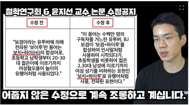 - 해당 논문으로 인해 큰 비난을 받게 된 보겸은 보이루라는 표현이 구독자들과의 인사일 뿐 여성 혐호 표현이 아니라고 반박함.