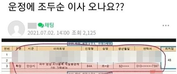 - 2021년 7월 2일, 부동산 관련 커뮤니티에 다음과 같은 제목의 글이 게재됨