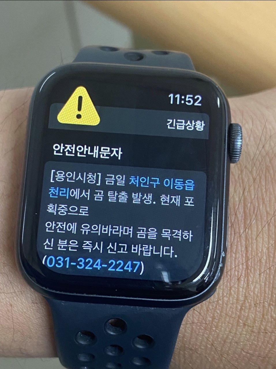 용인시는 인근 주민들에게 긴급안내 문자메시지를 통해 "금일 처인구 이동읍 천리에서 곰 탈출 발생. 현재 포획 중으로 안전에 유의를 바란다"고 대피를 안내했습니다.