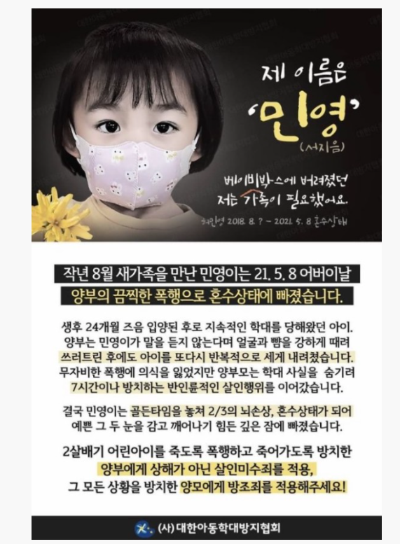[ 화성 입양아 민영이 학대 사건 간단 정리 ]