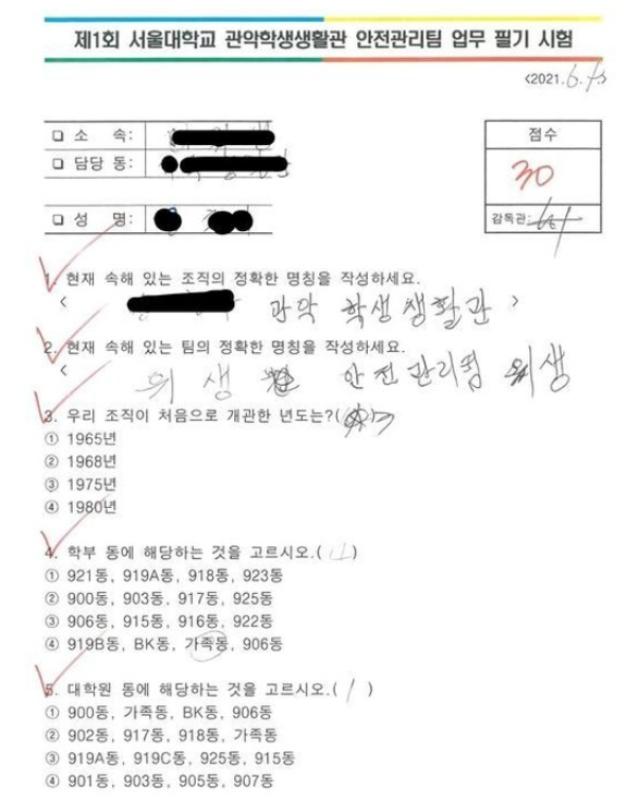 - 서울대 관악학생생활관 관계자는 갑질 가해자로 알려진 배아무개 팀장에 대해 "여전히 업무를 수행 중"이라면서 "6월 1일부로 안전관리팀장으로 발령이 나 업무를 한 거다. 원래는 코로나 대응팀장이다. 지금도 코로나 대응 업무를 수행 중"이라고 말함.
