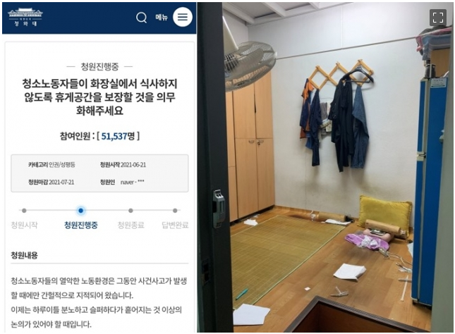 - 그가 하루 나른 쓰레기의 양은 100ℓ에 달하는 봉투 6~7개나 됐고 더욱이 코로나19 사태로 비대면수업이 증가하면서 기숙사에 머무는 학생들이 증가해 발생하는 쓰레기 역시 폭증해 노동강도는 더욱 강해짐.