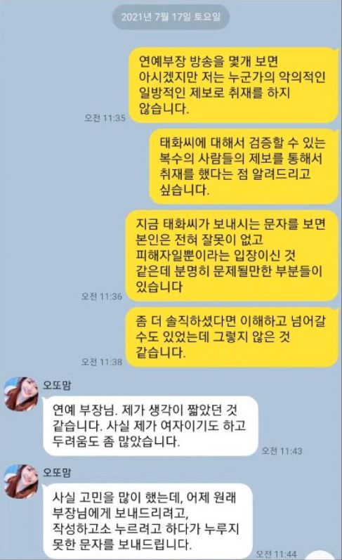 또한 "제보한 사람이 누군지 알 것 같다. 더이상 참지 않겠다"라며 "제가 가지고 있는 모든 경찰서 신고내역, 녹음파일, 협박, 증거자료가 있으니 고소하겠다"고 밝혔습니다.