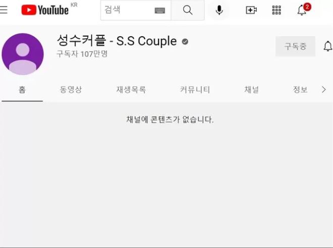 현재 성수커플 유튜브 채널에는 모든 영상이 삭제됐으며 커뮤니티 글만 남아 있습니다.