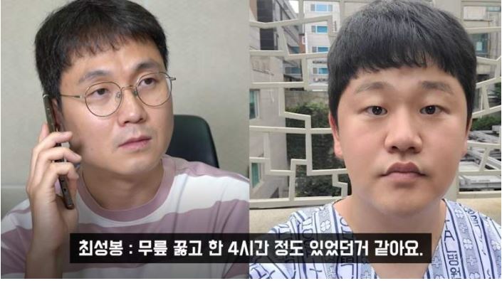 방송 출연으로 인해 건강 상태가 더욱 악화됐다고 밝힌 최성봉은 병원비만 3억 2000만원여가 밀려 병원에서도 퇴원을 강요 받아 4시간 정도 무릎을 꿇었다고 전함.