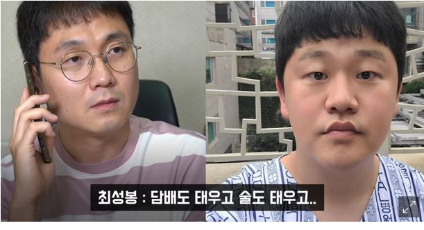 그러자 이진호는 제보 내용을 언급하며 음주·흡연 여부를 물었고, 최성봉은 "술과 담배는 하고 있다. 제가 5살 때부터 술과 담배가 저의 친구였다. 현재 상황이 너무 힘들어서 못 버티는 상황이랄까? 물론 항암 치료 과정에서 술, 담배를 하는 것은 안 된다. 안 되는데 내 고집이다"라고 전함.