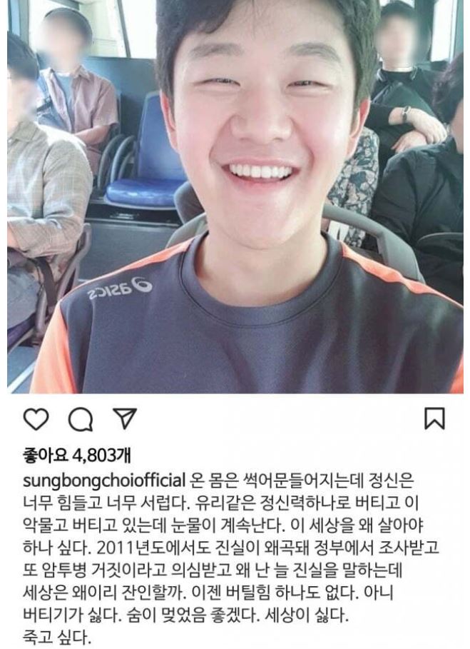 2021.10.12 - [사회,연예 이슈] - 가수 최성봉 극단적 선택 라이브 방송 논란 정리(+유서 자살소동 거짓암투병 프로필 등)