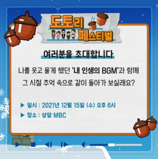 - 2021년 12월 15일, 도토리 페스티벌은 서울 상암동 MBC 사옥에서 진행 예정이었음
