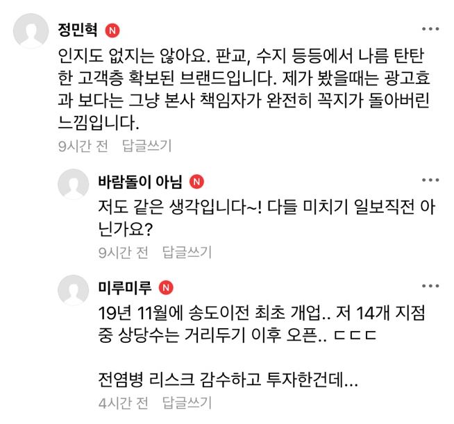 - 이어 "전국 14곳 모두 직영점으로 운영되는 해당 카페는 지난주 서귀포점을 폐업하게 됐고 지난 1년간 누적적자가 10억원을 넘었다"며 "그러나 그 어떤 손실보상금도 전혀 받지 못한 채 어렵게 운영해오고 있다. 여러분의 너그러운 이해와 용서, 그리고 많은 이용을 부탁드린다"고 말함.