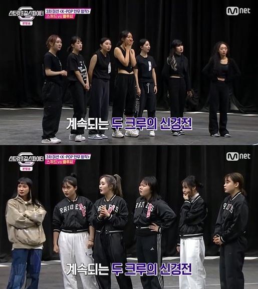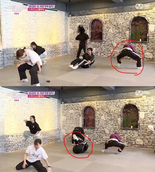 - 중간 점검에서도 신경전은 이어졌는데 클루씨의 안무를 카피한 스퀴드가 이들 앞에서 퍼포먼스를 선보이자 클루씨는 "테크닉할 때 골반을 들어야 한다"고 지적함.