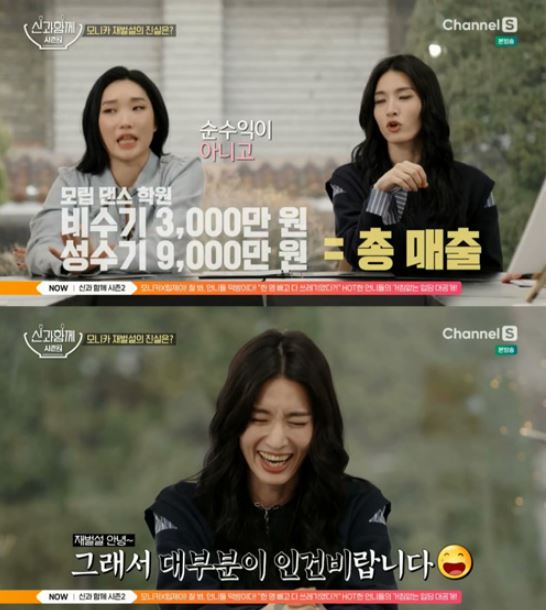 - 모니카는 "비수기 3천만 원, 성수기 9천만 원이 총 매출이다. 순수익이 아니고. 또 우리가 강사가 한 달에 거의 200명이 온다. 그래서 인건비로 다 나간다"고 해명함.