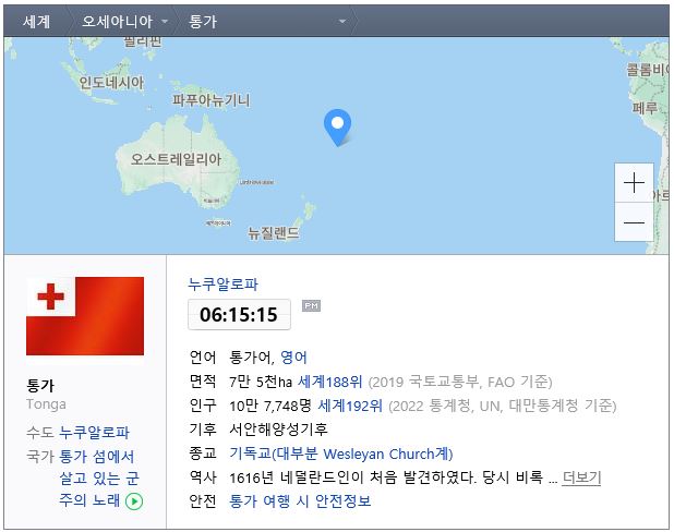 - 통가 인구는 10만 7천명으로 세계 192위임