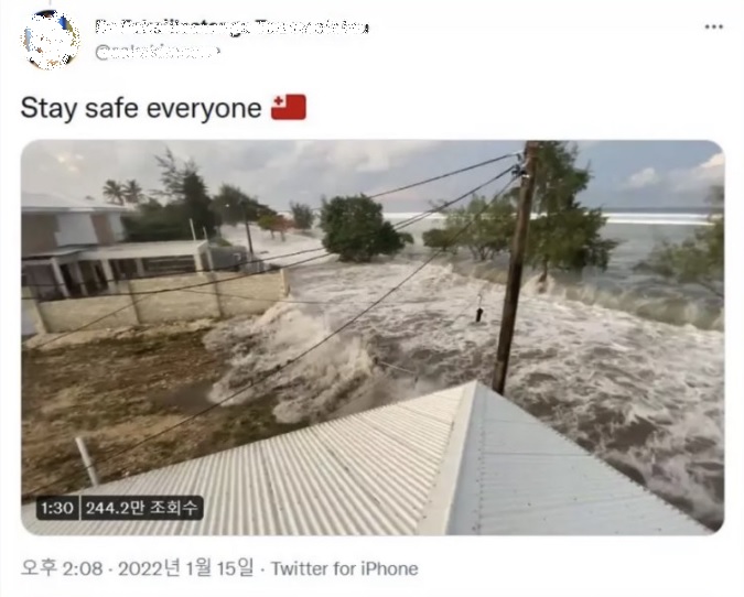 - 이번 폭발은 1만km 떨어진 미국 알래스카에서도 화산 활동 소리가 들릴 정도로 대규모였다고 함