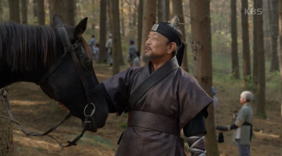- 극 중 이성계 역할을 맡은 배우 김영철이 말에서 낙마하는 장면이 있었음