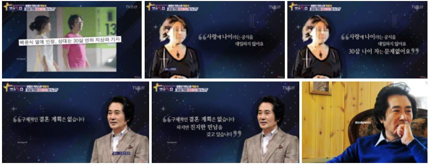 - 해당 서적 책소개에는 배우 백윤식이 언급됐는데 책을 쓴 곽 모 기자는 과거 30살 연상 백윤식과의 열애설로 화제를 모은 인물(K기자)임..